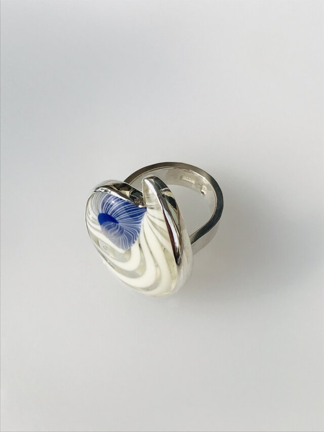 ガラスのアンモナイト・白と瑠璃・指輪/950silver#14
