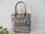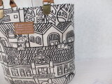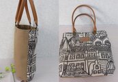 生成り地に建物の柄が映えるコットンとベージュ(無地)とで少し小さめのトートを作成しました。