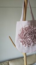 チェック&ストライプのやさしいリネン(グレイッシュピンク)で作ったバックです。