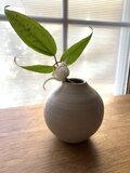薄いグレーのちいさい一輪挿しです。