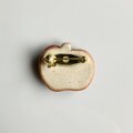 長い時間と手間を要するものですが、その甲斐あって土の手触りと陶の強度、釉薬の艶、金彩のきらめきなどを兼ね備えた、装飾性のあるブローチに仕上がりました。