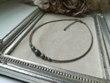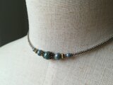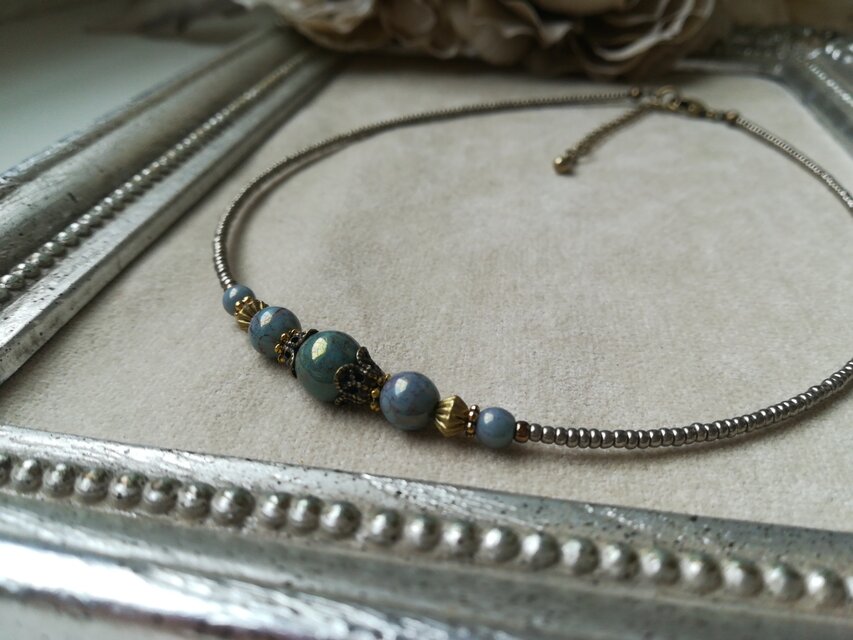 *陶器のような艶のモスグリーンの色合いがきれいなチェコビーズのチョーカーです。主張しすぎないデザインになっております。