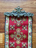 珍しい赤の手芸品で、上下を止める金具は重厚なデザイン性の高いものです。