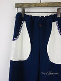 ふんわり柔らかなキルトニットネイビーとアラン模様ニット、リバティタナジャージでポイントして