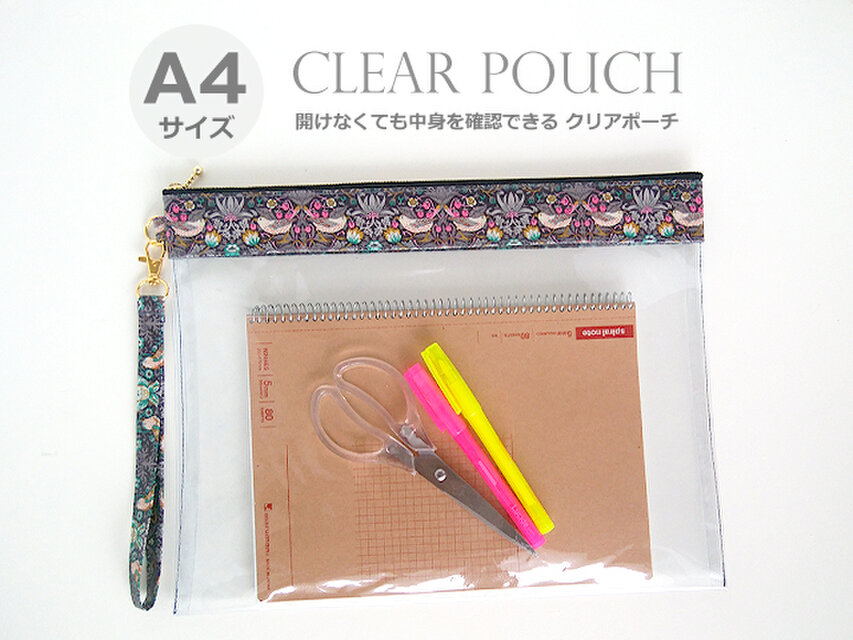 リバティ A4サイズ クリアポーチ (35)ストロベリーシーフ ブラウン