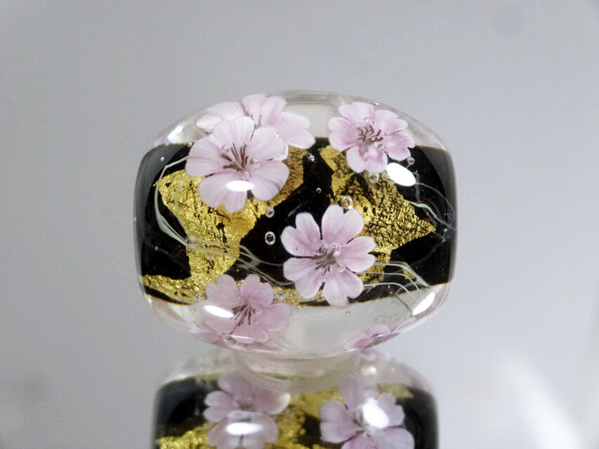 桜は表面に描いたのではなく、ひとつずつガラスでパーツを作り、溶かしたガラスに埋め込みながら制作しております。