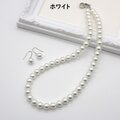 ホワイト系のカラーパールのシンプルなデザインのネックレスと一粒パールのピアス/イヤリングのセットです。