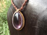 石の周りはワックスコード(蠟引き紐)で装飾し、ネック部分にはヘンプを使用。