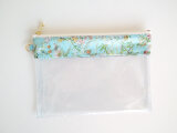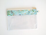 リバティの人気生地(ビニールコーティングつや無)、ワイルドフラワーズ Wild Flowers(水色)で中身が見えるクリアポーチを作りました。