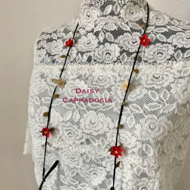 立体刺繍のメガネホルダー 「プルメリア」 オレンジ&ホワイト