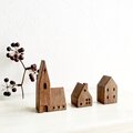 ヨーロッパの教会をモチーフに、無垢の木から削りだして小さな木の家を作りました。
