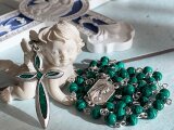 お品受取りしました。2つ共に良い出来上りで、丁寧に包んで下さり有難うございました。 このような大きな玉とメダイで大変だったのではないかと申し訳なく思います。