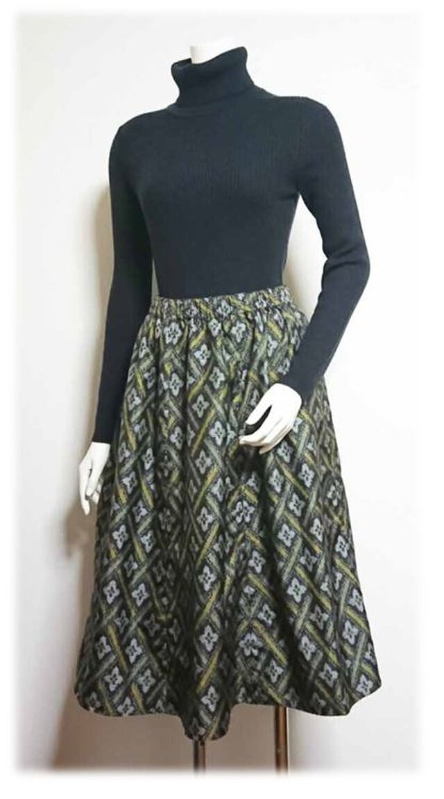 着物をリメイクした、エスニックなイメージのスカートなので