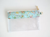 リバティの人気生地(ラミネートつや無し)、ワイルドフラワーズ Wild Flowers(水色)で中身が見えるクリアポーチSサイズを作りました。