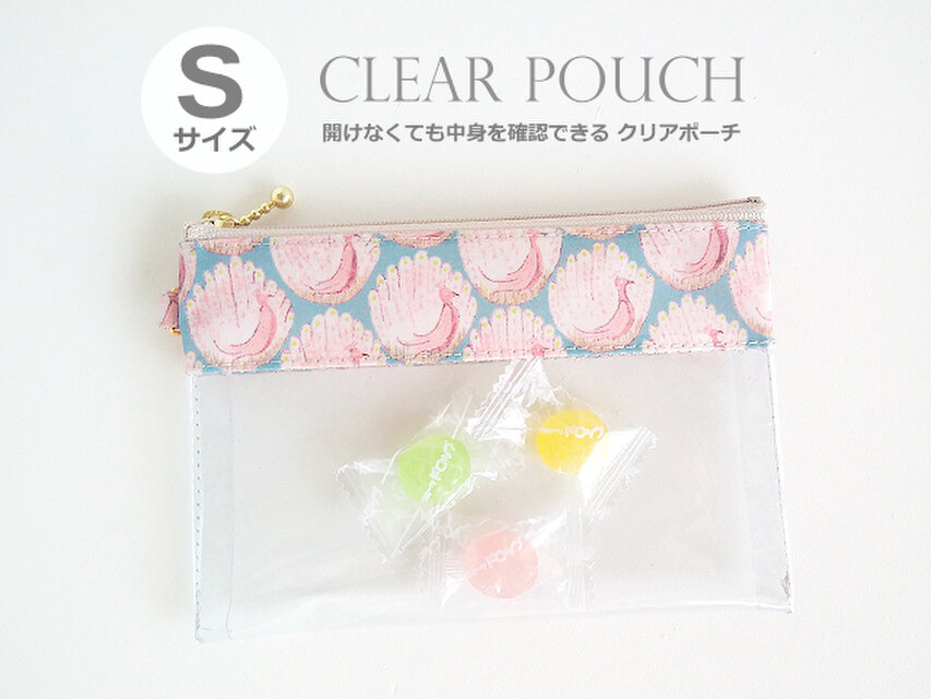 【注意】クリア生地部分に小さな傷、折れがある場合もございます。縫い終わりに生地を返す工程で傷や折れが出来てしまう場合があるようです。予めご了承下さいませ。