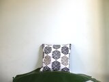 どんなインテリアにも馴染みやすく存在感のある紋様は、ハンドプリントならではの擦れもあり、手仕事ならではの風合いを身近に感じられます。