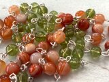 カーネリアン6ミリ玉、ペリドット6ミリ玉