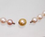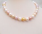 全体を一つのトーンにまとめ、どこから見ても美しくなるよう、サイズ、形、テリ、そして配色と、バランスをとりながら組み上げました。もちろんすべて天然の色です。染めの真珠は使っておりません。