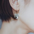 AVRILのメッシュリボンとコットンパールのピアスです