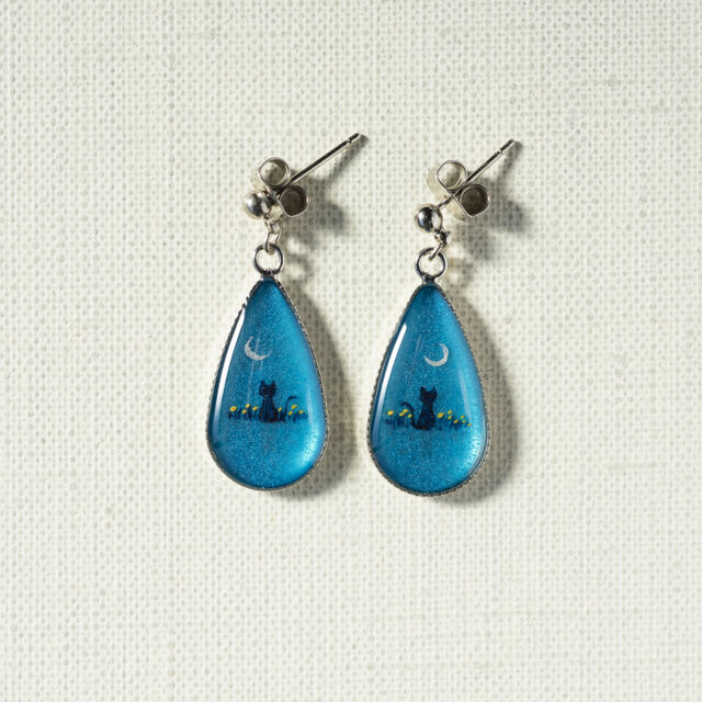 手描きのオリジナルイラストをレジンで閉じ込めたピアスです。