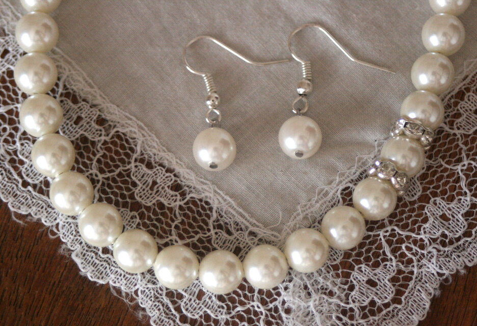 パールネックレスとシンプルな一粒ピアスのお得なセット。