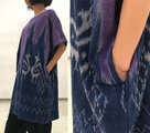 大きいサイズの草木染、藍染、手織綿、絣織チュニック、オールシーズン