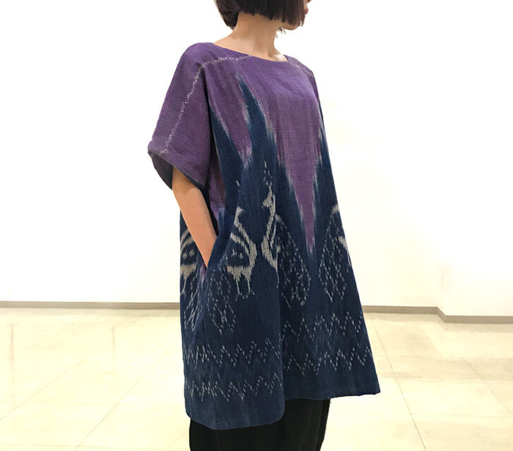 #絣織 #大島 #大島紬 #泥染 #草木染 #天然染料 #手織り #コットン #チュニック #ワンピース