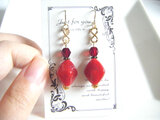 インフィニティパーツとマーブルビーズの赤色ピアス