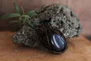日本にはまだあまり出回っていない、アンセストラライトのタンブルをアンティークゴールドのワイヤーで巻きました。