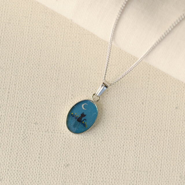 手描きのオリジナルイラストを樹脂で閉じ込めたちいさなペンダントです。