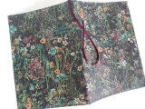 リバティの人気生地、ワイルドフラワーズ Wild Flowers(ダークグリーン)のラミネート生地(つや無)でA5サイズのノートカバーを作りました。