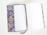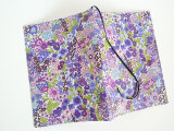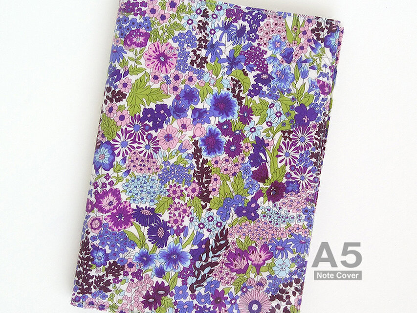 リバティの人気生地、マーガレットアニー Margaret Annie(パープル)のラミネート生地(つや無)でA5サイズのノートカバーを作りました。