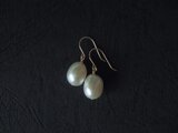 ぽってりとした様子が印象的です。あたたかみのある真珠の耳飾りです。
