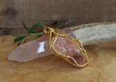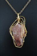 美しいサーモンピンク色のサチャロカローズアゼツライトをゴールドのワイヤーで巻きました。