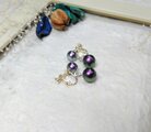 コットンパール丸リッチグレー8㎜とリッチグリーンブラック10㎜の大人配色なイヤリング