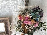 すべてナチュラルなドライフラワーを使用していますので時間とともに退色していきます、それもあわせてお楽しみいただければと思います。