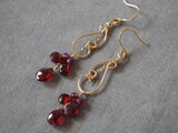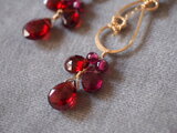 14kgf 深紅のガーネットエスニックチェーンピアス k14gf