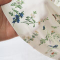 ・表面はスルスルと滑りのよい触り心地。春夏にぴったりのやや薄手の厚みです。小さく畳んでもシワにならず、軽量のタイプ。甘い印象になりがちな花柄ですが、柄に余白が十分あるのでさっぱりとした印象で着こなせます。
