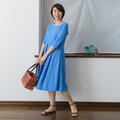 【S】アーミッシュ風シンプルワンピース◇七分袖(アクアブルー)*UVカット・透け防止機能付き*