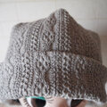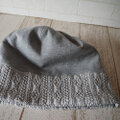 コットン素材のアラン模様ニット生地で作ったニット帽(ライトグレー)