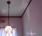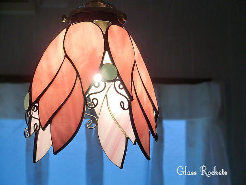 ・作品はピンクとホワイトのマーブルガラスを使って天使の羽をイメージして制作したペンダントランプ作品です。