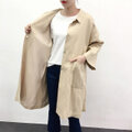 en-en リネン・ちび襟Aラインコート・ベージュ裏地付き