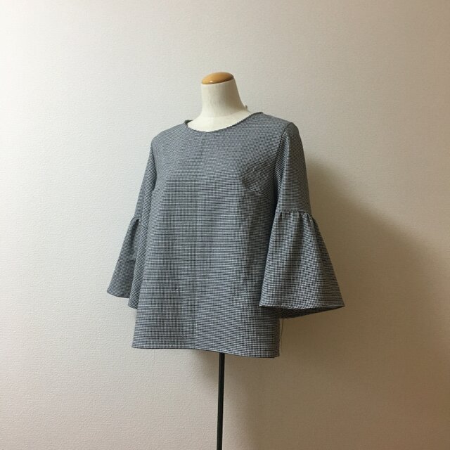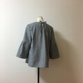 後ろ8㎝あきリボンの 袖切り替え部分に 少しギャザーの入った 袖広がりのデザインです。