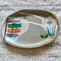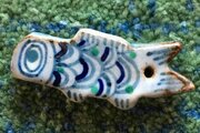 空を泳ぐ鯉のぼりを描いた楕円形のお皿と、鯉のぼり形のお香立てのセットです。