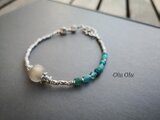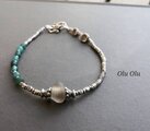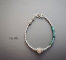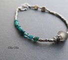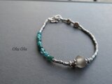 サイドにはアンティークブルーのインドパシフィックビーズといぶしカラーのカレンシルバーを合わせて、アンティーク感抜群のブレスレットに仕上げました。