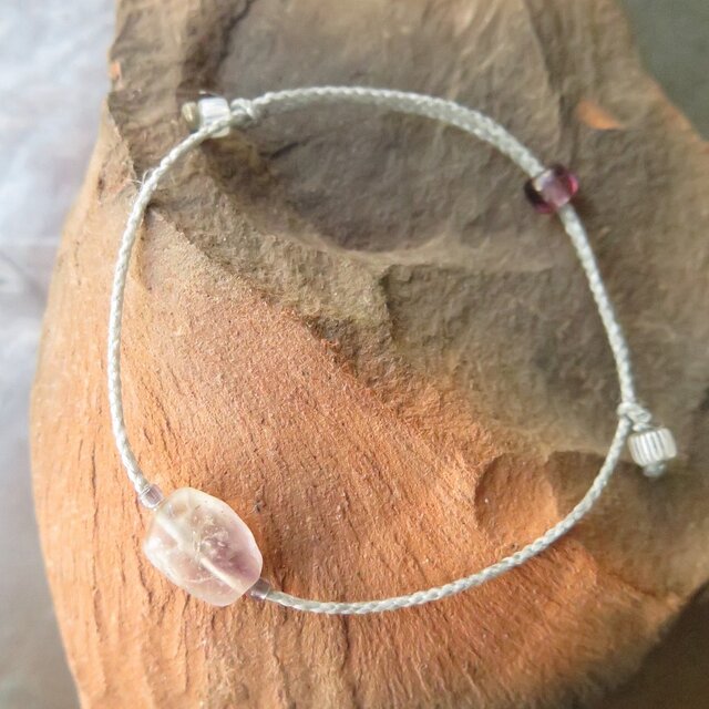 一部、紫水晶の入った古代水晶を一粒、蝋引き紐に通しました。