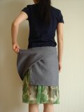 ベリーの生地の色違いでパープルグレーのエプロンを作成しました。少しパープルがかったきれいなグレーです。グレーなので、どんなお洋服にも合わせやすいです。生地は中厚地でタンブラーウォッシュ加工されており、とてもやわらかく気持ちがいいです。