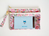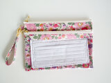 リバティの人気生地、(ビニールコーティングつや無)、Wiltshire ウィルトシャー(ネイビー)便利なWファスナーのフロントクリアポーチ(B6サイズ)を作りました。