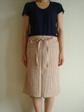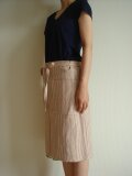 ベージュの地に赤と白のストライプがカジュアルで爽やかな雰囲気を出しています。
