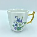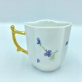 スッキリとした清楚なカップの姿に合うように、スミレの花を描いて、持ち手を金に塗りました。